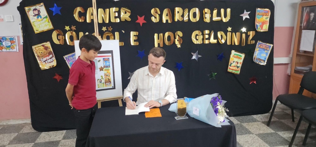 OKUSAM PROJESİ MAYIS AYINDA OKULUMUZDA YAZAR CANER SARIOĞLU İLE SÖYLEŞİ VE İMZA ETKİNLİĞİ GERÇEKLEŞTİRDİK. İLÇE MİLLİ EĞİTİM MÜDÜRÜMÜZ MUSTFA ÖZDİL VE ŞUBE MÜDÜRÜMÜZ FAHRİ ER İLE FARKLI OKULLARDAN İLKOKUL ÖĞRENCİLERİ DE ETKİNLİĞİMİZE KAILARAK BİZLERİ ONURLANDIRMIŞTIR. EMEĞİ GEÇEN HERKESE TEŞEKKÜR EDERİZ.